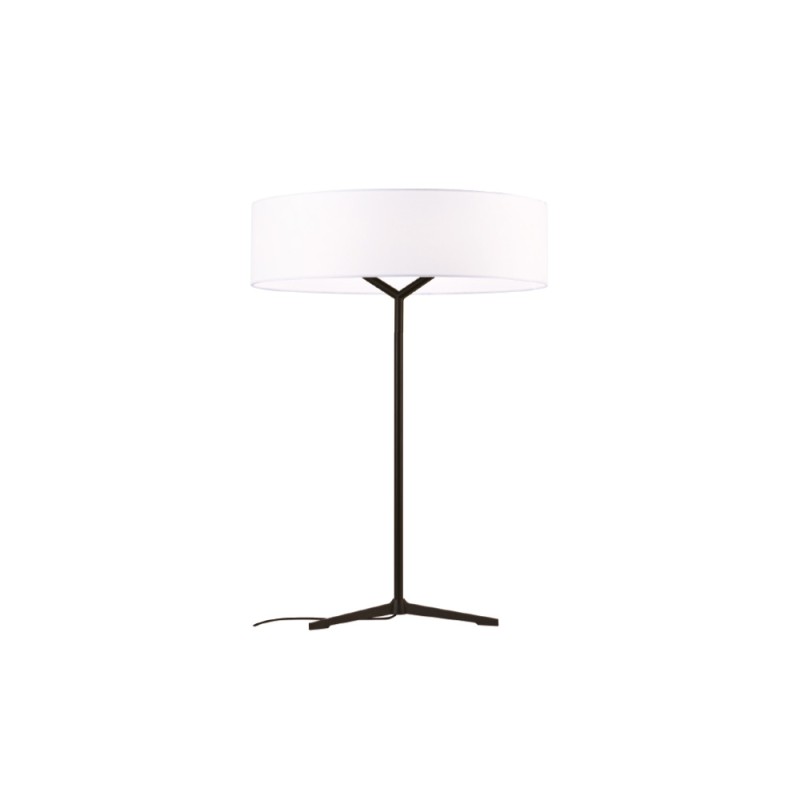 Πρόκειται για ένα μεταλλικό επιτραπέζιο φωτιστικό σε μαύρη απόχρωση. Το υφασμάτινο καπέλο το συνοδεύει συμπληρώνοντας τη μίνιμαλ σχεδίασή του.