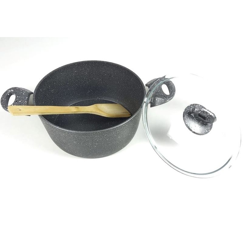 Κατσαρόλα Από Αλουμίνιο και Επικάλυψη Μαρμάρου και Γυάλινο Καπάκι
